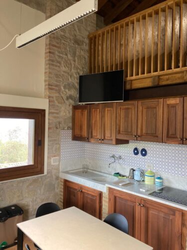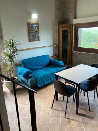 L’appartamento Il Mandarancio è un nuovo appartamento su due livelli. Consta di soggiorno-cucina con grandi vetrate con vista su tutto il territorio dell’Appennino, una zona notte con letto matrimoniale ed un soppalco con due letti singoli. Ha riscaldamento e raffreddamento con deumidificatore a pavimento, pavimentazione in cotto autoctono fatto a mano, porte in noce massello, soppalchi e divisorie camere in tavolato e travetti di rovere, mattonelle di Vietri nelle cucine e bagni, lavandini e ripiani delle cucine in Marmo di Carrara.